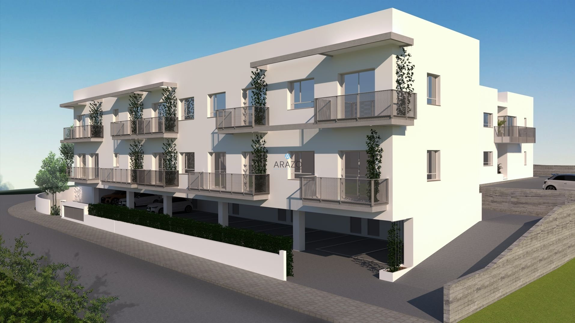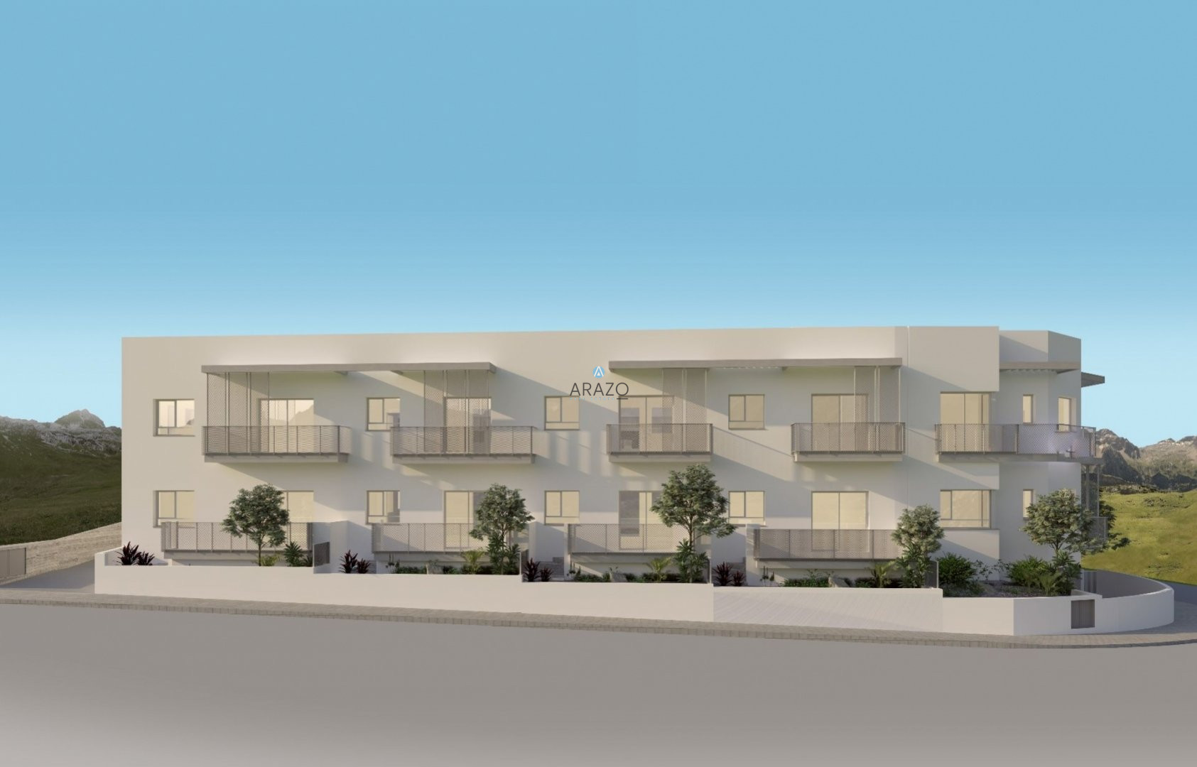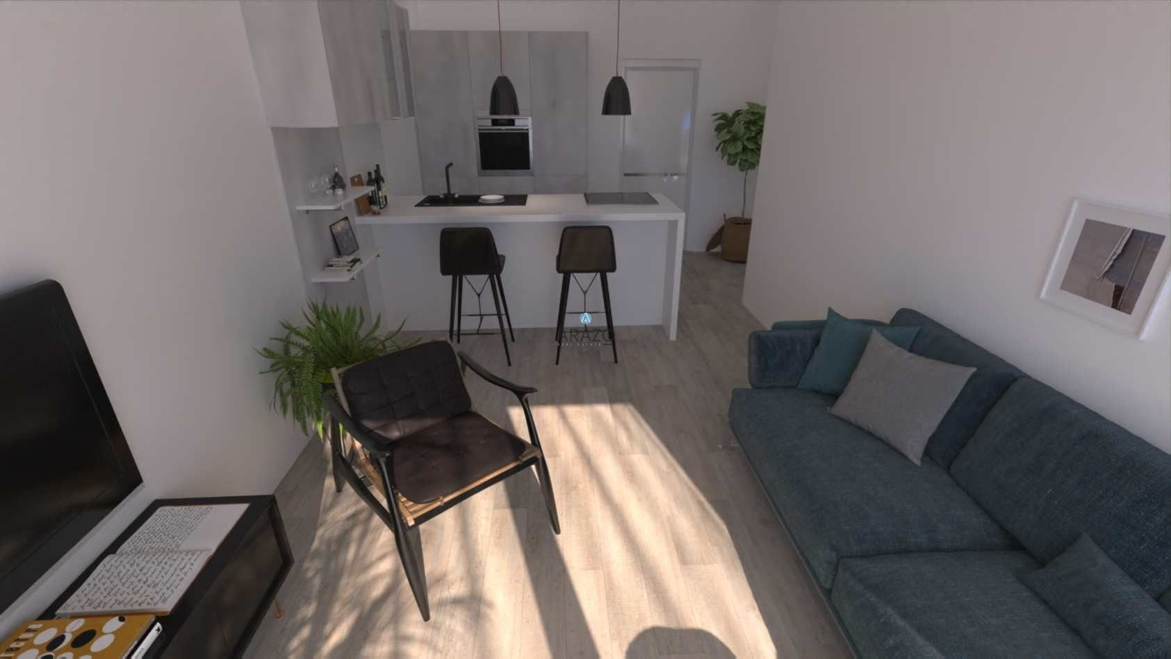 The apartment consist of an open plan living and dining area which is unified with the kitchen, one bedroom, a main family bathroom with toilet and built-in wardrobes. Each apartment has its own photovoltaic system with a water heater. The entrance to the complex is closed by a gate.