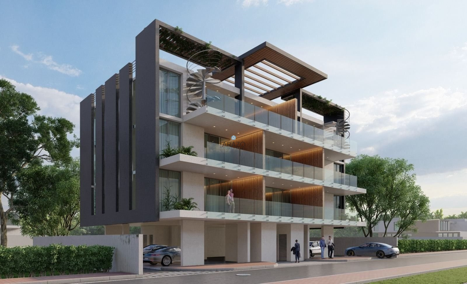 The project boasts eight apartments, 1 and 2 bedrooms apartments and 2 bedroom penthouses with large terraces all with spacious and contemporary living areas. There are three apartments per storey, on the last floor there are only two apartments. The apartments consist of an open plan living and dining area which is unified with the kitchen, two bedrooms, en - suite shower with a toilet in the master bedroom and a main bathroom with a toilet. Each apartment has one parking bay and storage room.