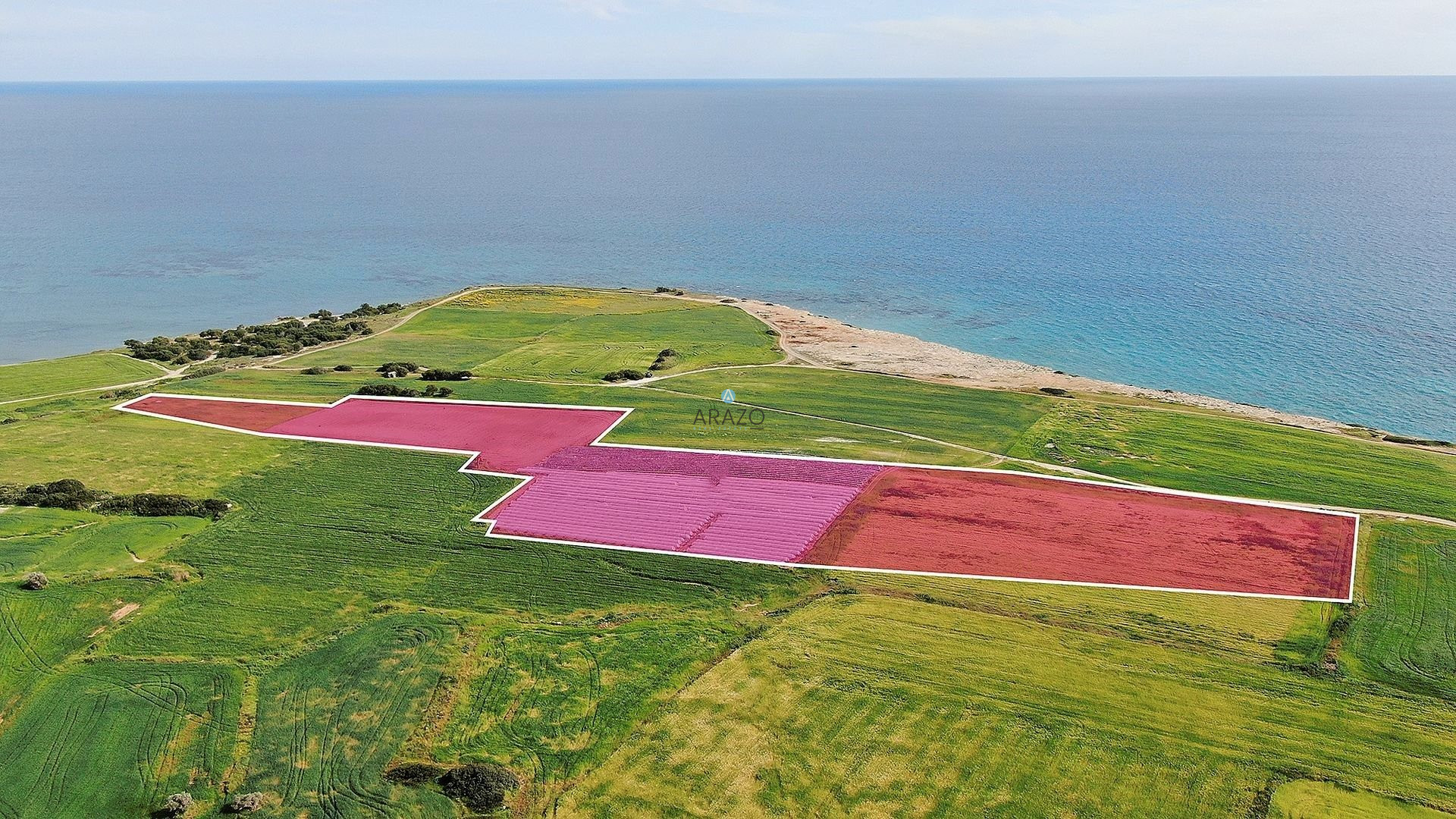 Seaview field of total area 36.456 sq.m located in Mazotos in the district of Larnaca. It has an irregular shape, is enclosed and is approximately 0.5 km from a registered road. Access to the field is via an unregistered dirt road. It falls within 2 zones ( 48% falls within touristic zone and 52% falls within Agricultural zone Γ3).Its eastern side is only 110m from the sea and its southern only 240m. It offers an unobstructed sea view .