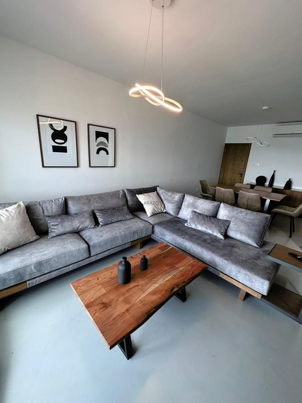 The property consists of an open plan living and dining area which is unified with the kitchen, three bedrooms, en - suite shower with toilet in the masted bedroom and a main family bathroom with toilet. Fully furnished, newly fitted kitchen, brand new kitchen appliances and brand new A/C split units.