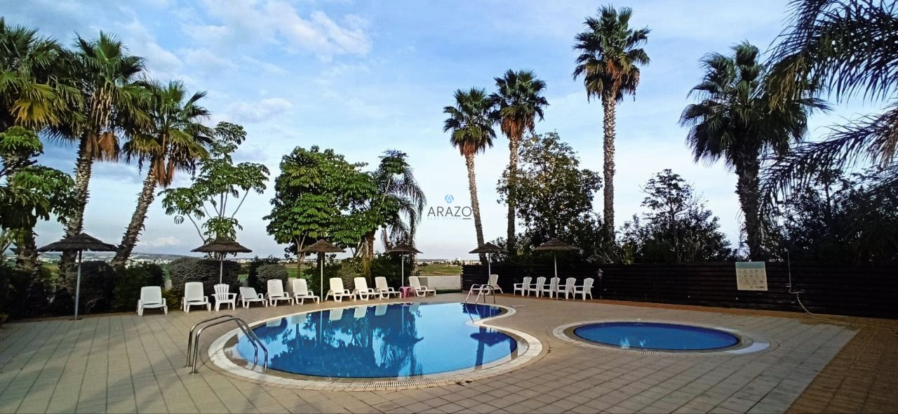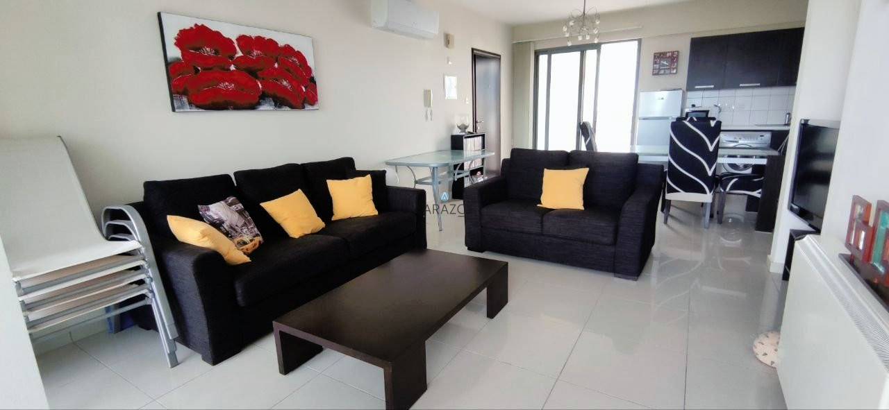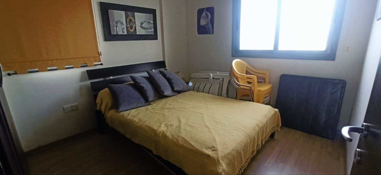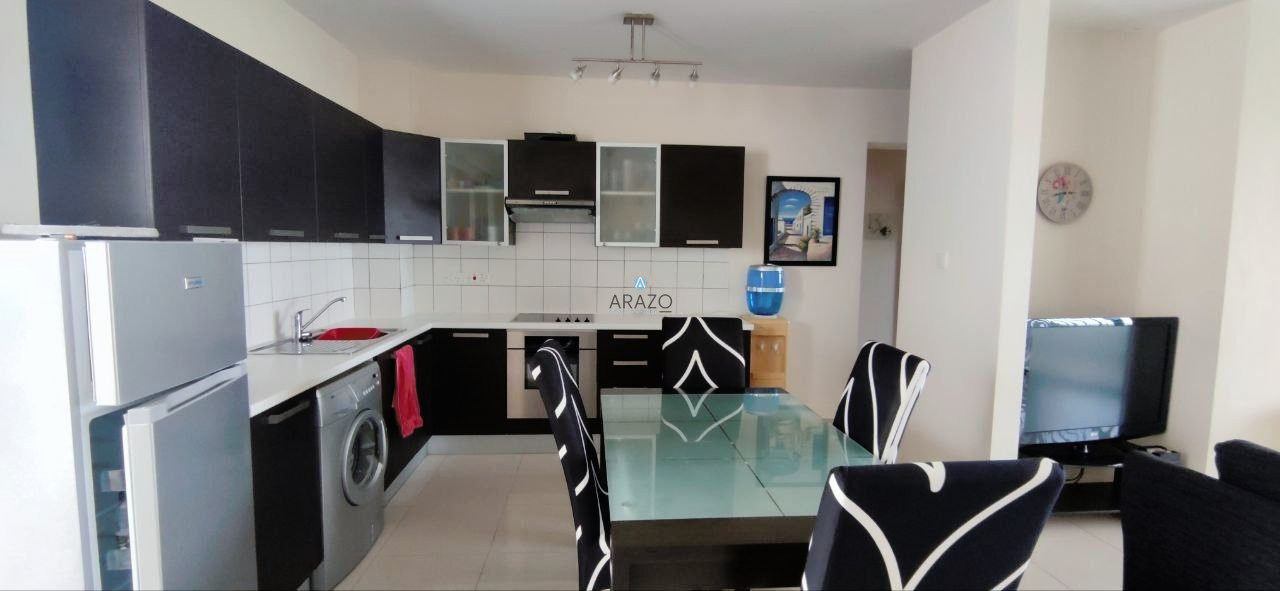 The apartment consist of an open plan living and dining area which is unified with the kitchen, two bedroom and a main bathroom with toilet. Fully furnished, fully equipped kitchen, A/C split units, storage, communal swimming pool, garden and the complex is gated.
