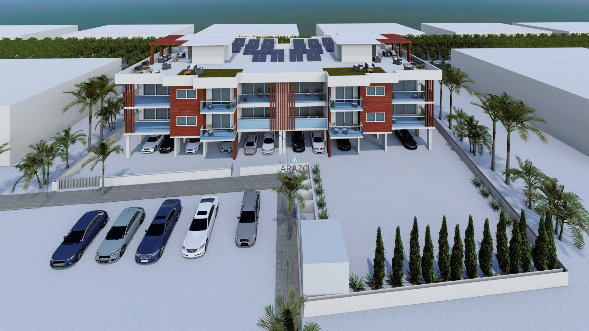 A modern residential apartment building in the new developing and growing area of Livadia, in Larnaca City. The project is a three storey building including a ground floor covered parking, 16 luxury apartments with a mix of one and two bedrooms and covered verandas. All apartments have a modern open plan layout, custom made kitchen cabinets, built-in wardrobes, large double glazing windows and much more. Each apartment include a private storage room and a covered parking on the ground floor.