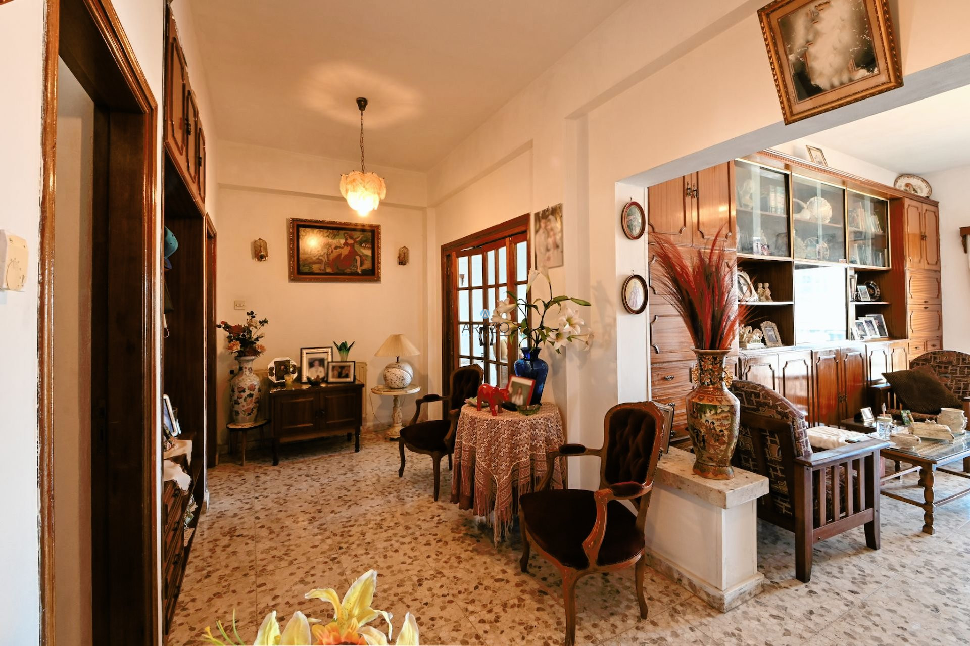 The property on the ground floor consists of two unconstructed licensed shops and a house on the first floor. The house has 250sq.m internal area and it consists of a living room, second living room with dining area, separate kitchen with dining space, guest toilet, three bedrooms, a main family bathroom and three covered verandas. The house will be sold partially furnished with all kitchen appliances, A/C split units, central heating and there are photovoltaics panel 4KW.